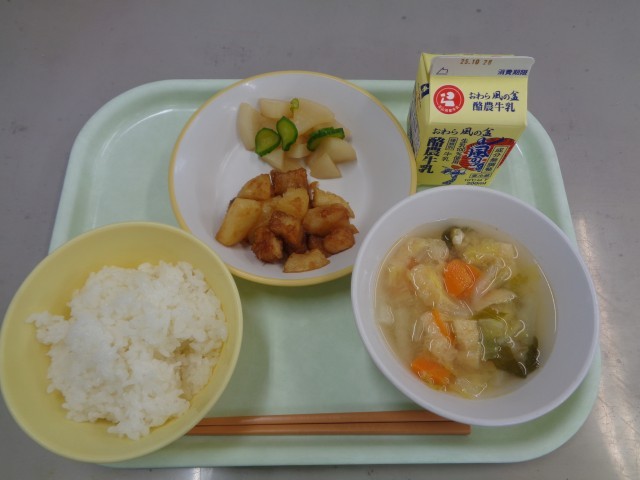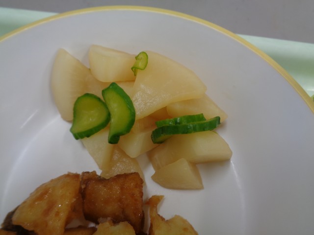 今日のかぶは、富山県産のかぶでした。かぶは、10月~12月に旬を迎えます。秋から冬にかけては、甘味が強くなるようです。地元で採れた新鮮な野菜をおいしくいただきました。