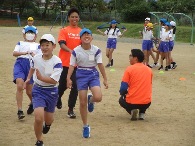6年生 陸上運動教室 公開日 2025/10/22 更新日 2025/10/22 6年生 今日はアスリッシュのみなさんの陸上教室がありました。体幹や体のバネを鍛えるトレーニングを教わったり、一緒に走ったりしました。来月のチャレンジ陸上に向けて練習を頑張っています。
