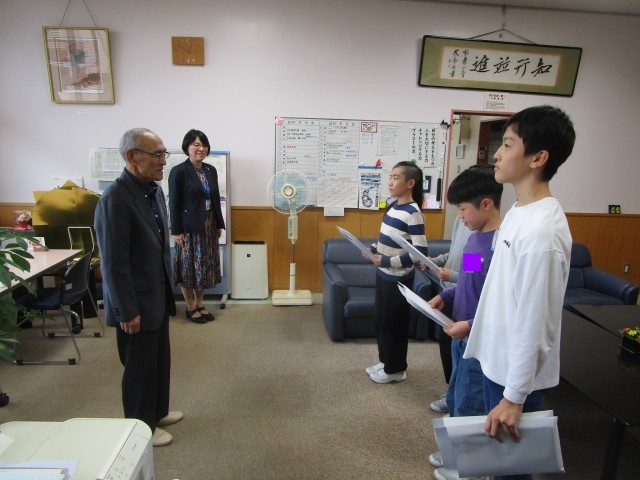 6年生 一人暮らしのお年寄りへのお手紙贈呈式 公開日 2025/10/22 更新日 2025/10/22 6年生 今日、社会福祉協議会の方が来校され、6年生の子供たちが心を込めて書いた、杉原地区の一人暮らしのお年寄りへのお手紙をお渡ししました。毎年、杉原小学校6年生からのお手紙を楽しみに待っておられる方が大勢いらっしゃるそうです。社会福祉協議会の方から感謝の気持ちを伝えてもらい、子供たちはとても嬉しい気持ちになりました。