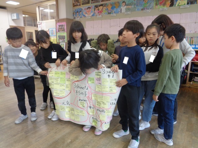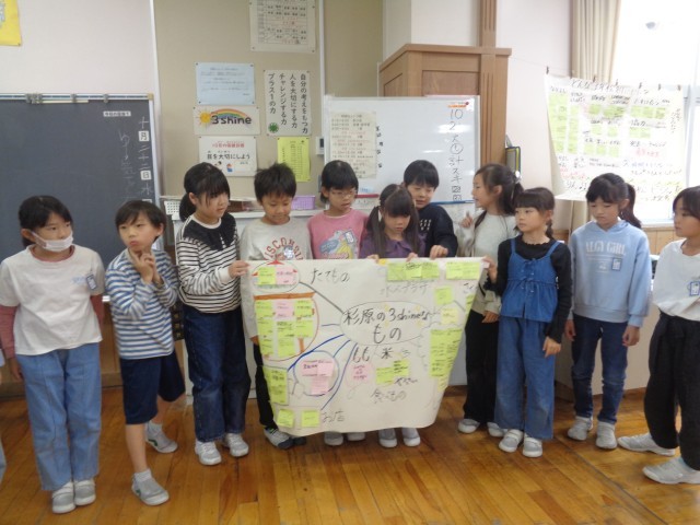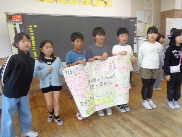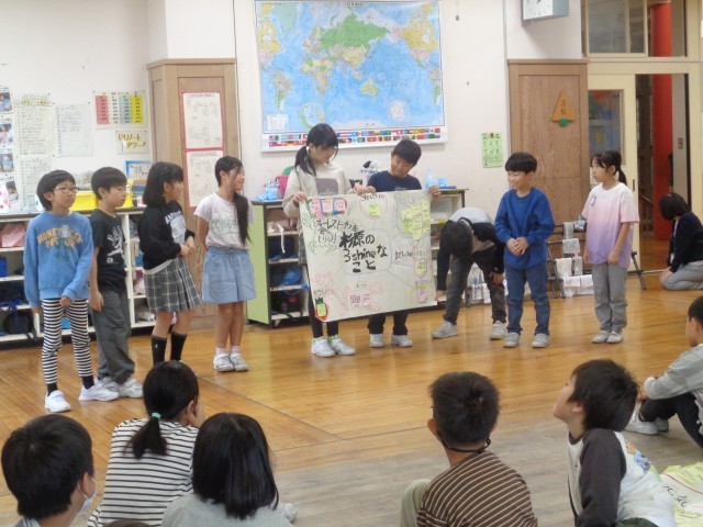 杉原の「すてき」についてインタビューしたことを、「杉の子」「地域の人」「もの」「こと」にまとめました。グループごとに発表をし、杉原の素敵なところを再発見しました。