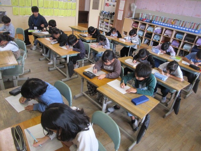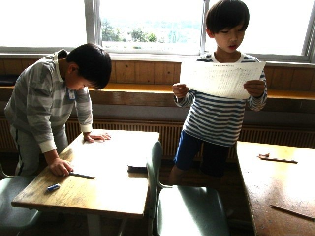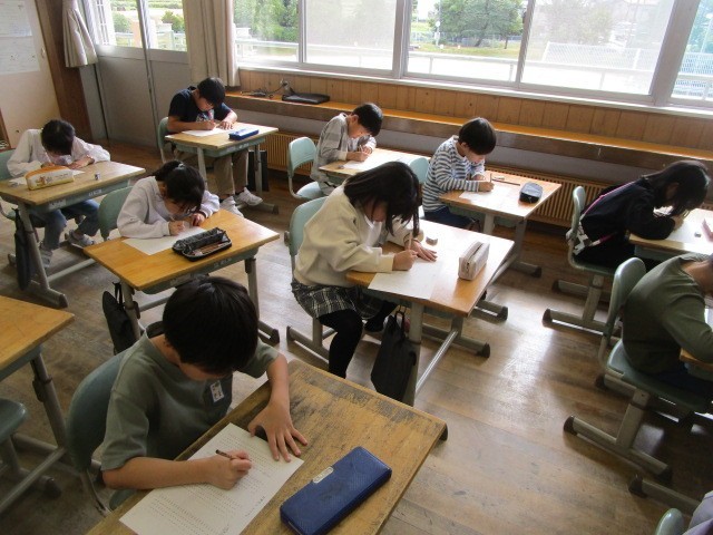 終わった友達同士で答え合わせをして、合格のサインをもらっていました。