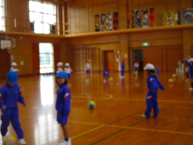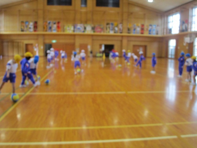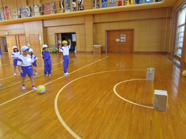 来週から、段ボールを使ったボールゲームをします。それに向けて、今回はボールをける練習をしました。
