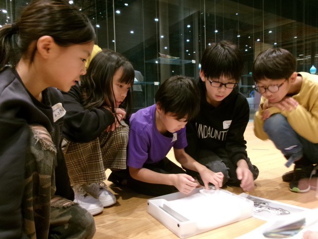 学芸員の方に、ガラスでできた作品はどのように作られているのか教わりました。また、作品を見る方向によって見え方に違いがあることを聞き、感じたことをグループで伝え合いました。