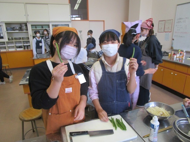 6年生 家庭科 調理実習 公開日 2025/11/26 更新日 2025/11/26 6年生 今日の調理実習では、野菜のベーコン巻きをつくりました。野菜の切り方や茹でる時間に気を付けてつくることができました。