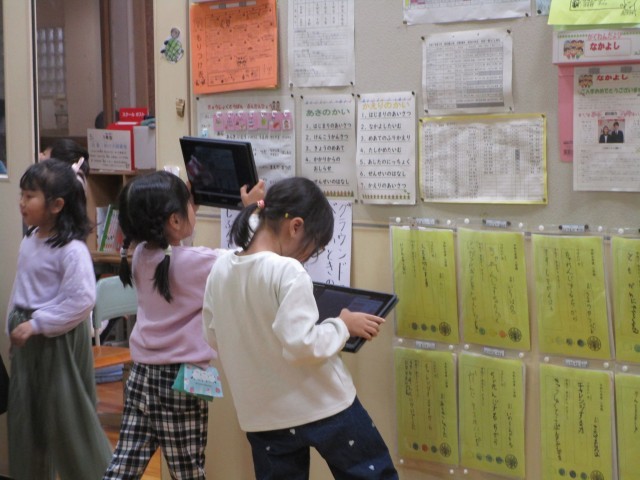 段ボールとモールを使って、「すきまちゃん」をつくりました。「すきまちゃん」の視点で校内の隙間等を見付け、いつもは注目しなかった場所の特徴に注目し、造形的な面白さに気付くことをねらいとしています。「すきまちゃん」をどこの隙間に入れようか子供たちはいろいろ考え、楽しんで写真を撮影していました。