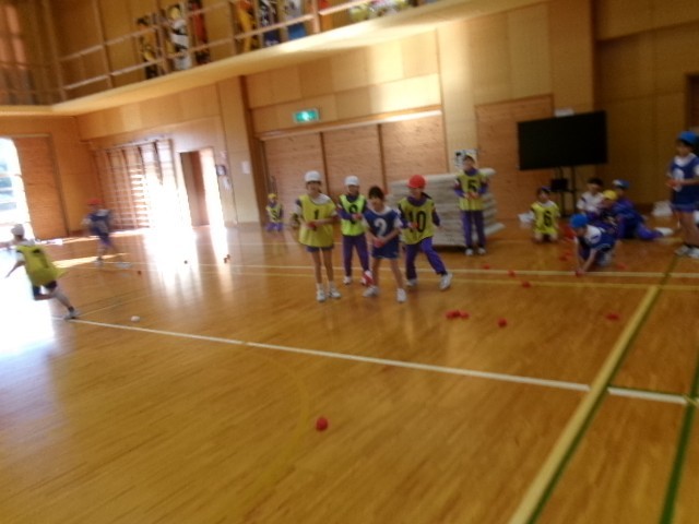 2学期最後の体育は、スポーツ雪合戦をして体を動かしました。
