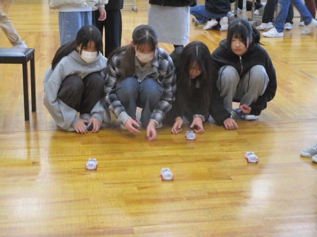 理科の学習では、電気を様々な形に変換して利用したり、溜めたりすることができると学びました。今日はキットを組み立てて電気の力で動く車を走らせました。