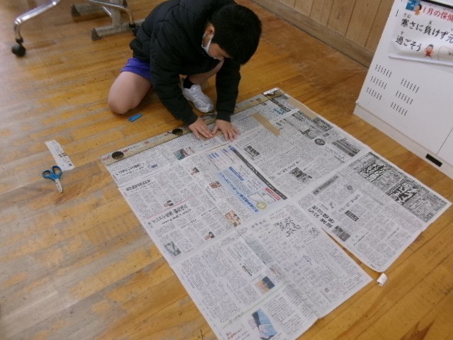 1㎡はどのくらいの広さなのか、新聞紙でつくって確かめました。