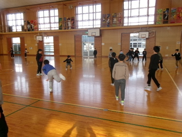 ドッジボールをして、体を動かしています。