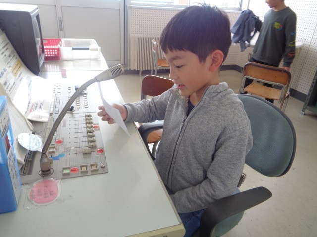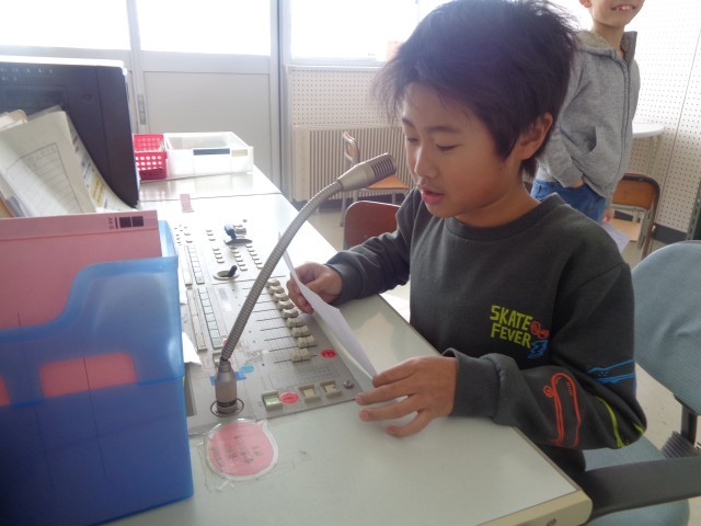今日は、4~6年生がスキー学習だったため、3年生が1日だけ最高学年でした。給食の放送に挑戦しました。