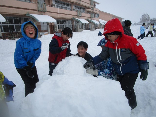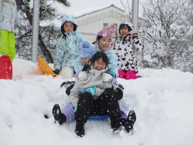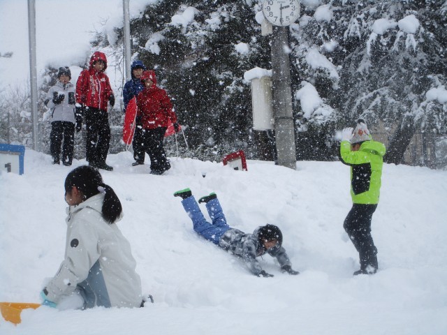 スキー学習の予備日ということもあり、もっと自然と親しくなるために雪遊びをしました。大盛り上がりの一時間でした。