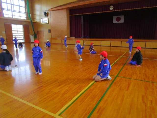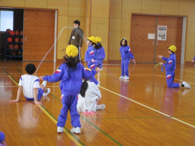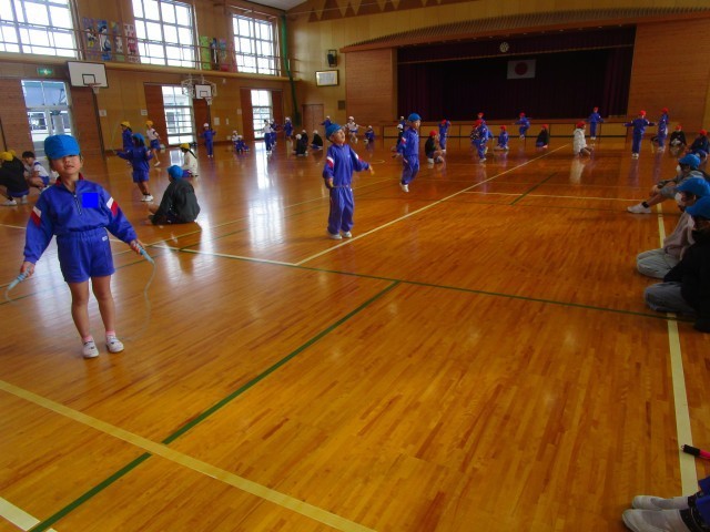 6年生のお兄さんお姉さんとなわとび中間記録会をしました。
