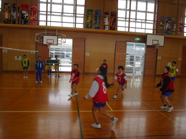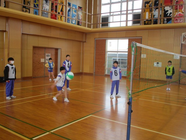 6年生 体育 ビーチボール 公開日 2026/02/02 更新日 2026/02/02 6年生 体育ではビーチボールをしています。昨年度よりレベルアップし、白熱した戦いが繰り広げられました。審判も子供たちが行っています。