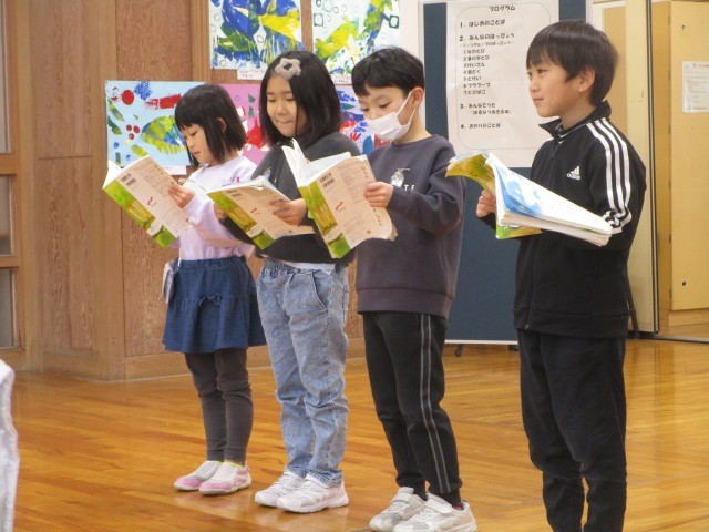 入学してからできるようになったことを、グループに分かれて発表しました。いつもより緊張していましたが、自分の演技をがんばりました。