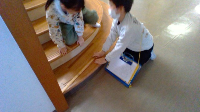 1mものさしを使って、いろんな場所の長さを測りました。子供たちは、今まで学習したことを生かして「はしっこをそろえるよ」「真っ直ぐ測るよ」など、声をかけ合って、友達と協力して活動しました。