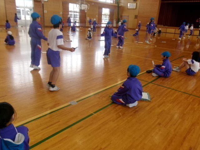 短縄と8の字跳びの記録を測定しました。これまでの練習の成果を発揮しました。