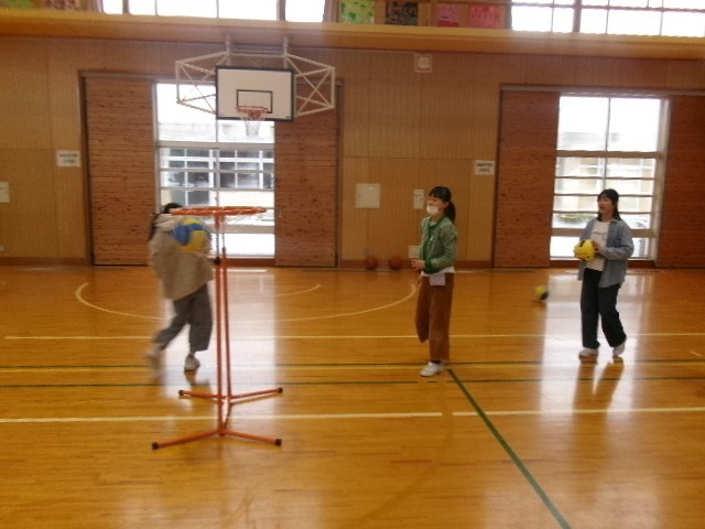 朝のパワーアップ運動で、セストボールをして体を動かしました。