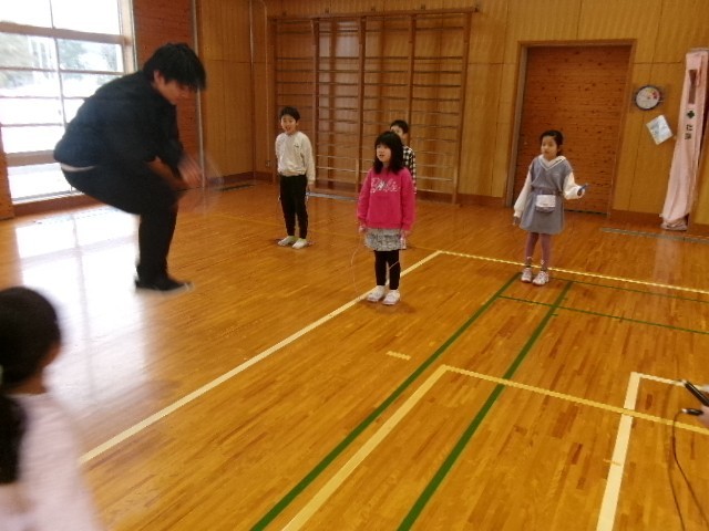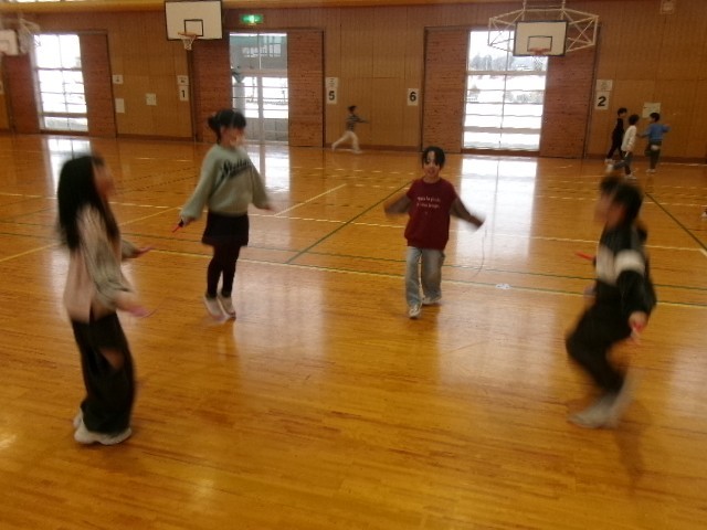 今日のパワーアップ運動は、体育館で短縄をしました。