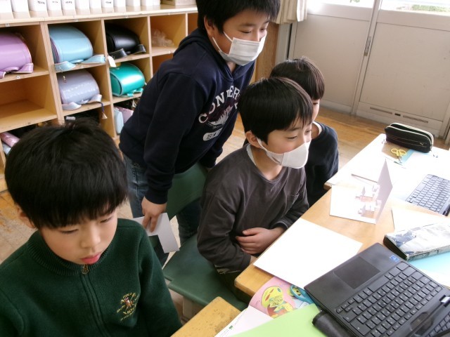 4年生 図工 公開日 2026/02/27 更新日 2026/02/27 4年生 飛び出す仕掛けのあるカードをつくっています。渡す相手が好きなキャラクターを描いたり、画用紙の切り方をいろいろと試したりしながら活動しています。
