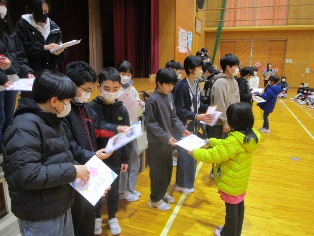 6年生 スマハピ集会 公開日 2026/02/27 更新日 2026/02/27 6年生 今日はスマハピ集会で、6年生の卒業をお祝いしてもらいました。在校生からの心温まる祝福を受け、6年生の子供たちは終始笑顔が絶えませんでした。小学校生活は残り僅かですが、また一つ、忘れられない思い出ができました。