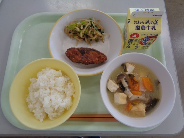 今日は、富山県民に親しまれている「ふくらぎ」でした。ふくらぎは、「ぶり」の幼魚で、成長とともに呼び名が変わる、出世魚です。また、大漁で港が賑わい、「福が来る魚」として縁起を担いで名付けられました。今日は、カレー粉としょうゆで下味をつけ、片栗粉をまぶして油で揚げました。カレー風味で、食欲がわきました。今日もおいしくいただきました。