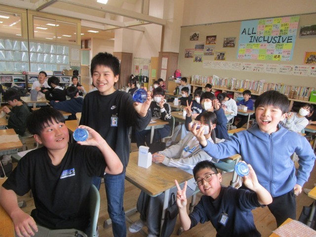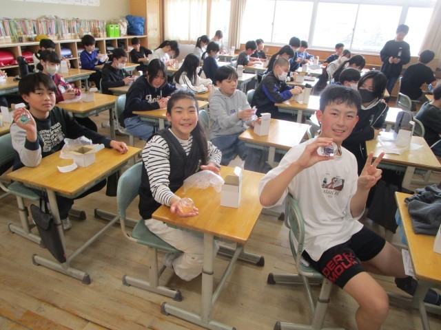 1月に体験した卒業記念制作のペーパーウェイトが完成し、子供たちのもとへ届きました。子供たちは美しく仕上がった作品をじっくり眺めたり、友達の作品と見比べたりしていました。
