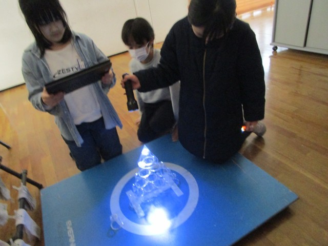 映し出される影を楽しんでいます。