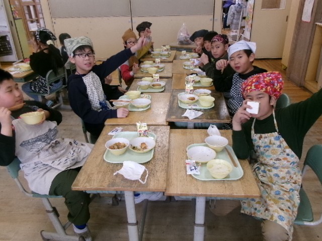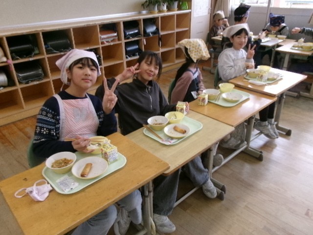 4年生最後の給食を美味しくいただきました。