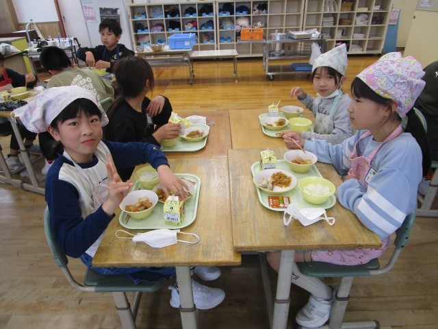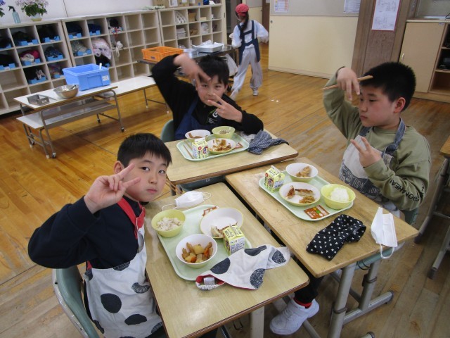 新しいクラスの友達と美味しく給食をいただきました。