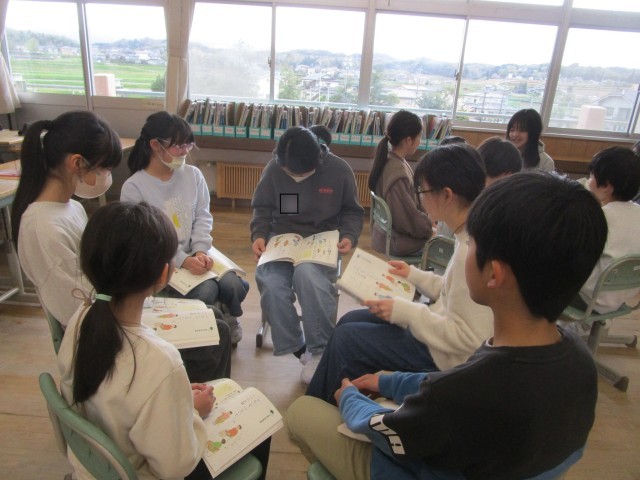 新年度の学習が始まりました。前の人につないで、お話をつくっています。
