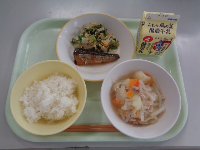 「いわし」の梅煮でした。いわしには、「マイワシ」、「ウルメイワシ」、「カタクチイワシ」の3種類があります。給食のいわしは、「マイワシ」でした。「マイワシ」は、体に黒い斑点が7個ほど縦列しているのが特徴です。お店等で、じっくり観察してみてください。おいしくいただきました。