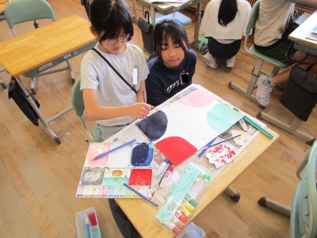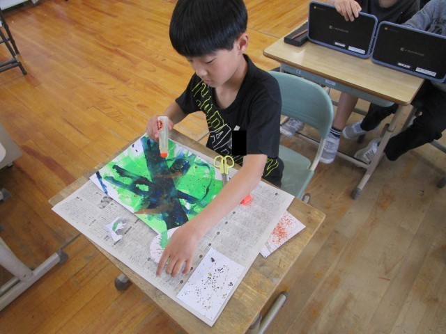 吹き流しやスパッタリング等の技法を使って、自分の心の模様を表現しました。