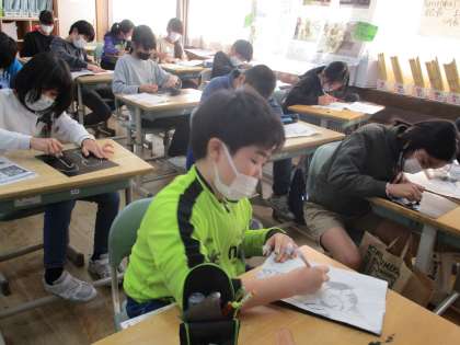 子供たちは、動物や植物など、思い思いの作品に取り組んでいました。