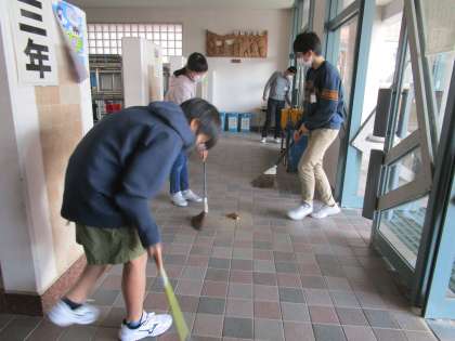 集会委員会では、次の集会に向けて相談しています。環境美化委員会では、学校がきれいになるように、汚れているところを見つけて清掃をしていました。