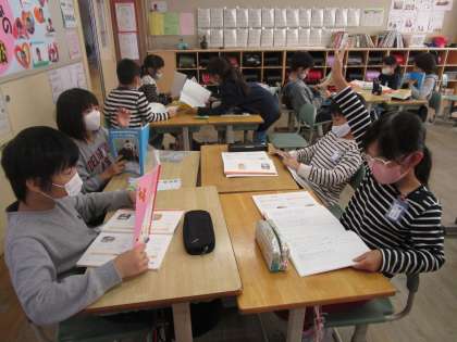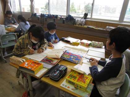 教科書や辞書で調べたことわざ・故事成語をクイズ形式で練習しました。