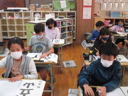 書き初めの季節がやってきました。今年4年生が書くのは「立山の春」です。