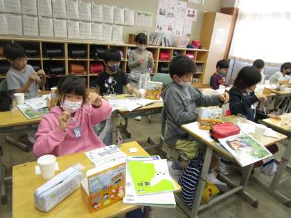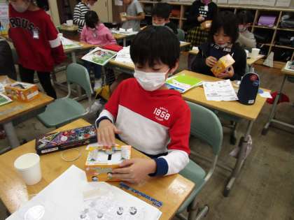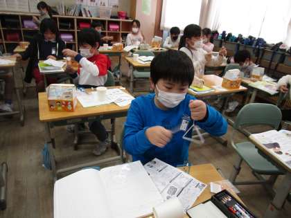 3年生 音を出して調べよう 公開日 2020/11/27 更新日 2020/11/27 3年生 「音」の学習がスタートしました。 トライアングルや輪ゴムギターで音を出し、様子を観察しました。 どんなことに気付いたかな。
