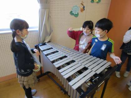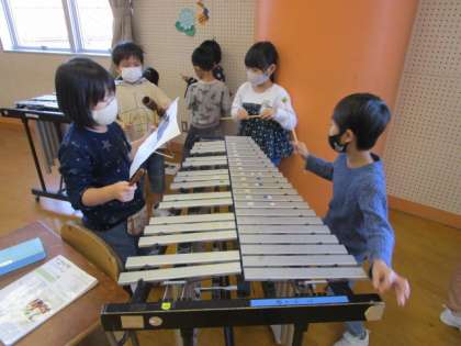 1年生 音楽 ほしぞらのおんがく 公開日 2020/12/01 更新日 2020/12/01 1年生 星空の様子を思い浮かべて、音楽づくりをしました。グループで話し合い、鉄琴や鈴、トライアングル等の楽器の鳴らし方を工夫していました。