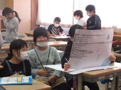 4年生 総合 公開日 2020/12/01 更新日 2020/12/01 4年生 環境をテーマに調べ活動を進めてきた子供たち。紙芝居やクイズで学習の成果を発表したいと考えているグループの子供たちは、今週末から他学年に向けて伝える機会をもつ予定です。