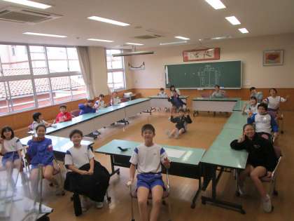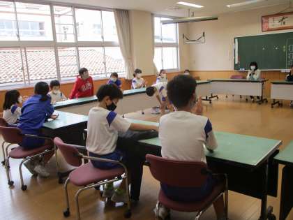 校長先生や友達に質問したり、反応したりして話がはずんでいました。