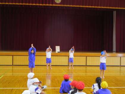 1年生 体育 ダンスの発表会 公開日 2020/12/02 更新日 2020/12/02 1年生 今日は、練習してきたダンスの発表会でした。各団、踊り方を工夫したり、立ち位置に変化をつけたりして、オリジナルのダンスを披露しました。見ている友達から拍手をもらい、嬉しそうな子供たちでした。