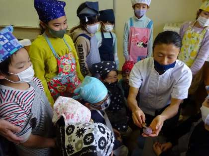 2年生 生活「体験学習会」1 公開日 2020/12/03 更新日 2020/12/03 2年生 杉田地区にある「柳澤屋」の方をご招待して、体験学習会をしました。仕事の内容をお話いただいたり、上生菓子に飾り付けをしたりました。 子どもたちは、素敵なお話や初めての体験に大喜び!また、杉原のキラリをたくさん見付けることができました!今日、家に飾り付けをしたお菓子を持ち帰りましたので、是非ご覧ください。本日の活動のために、爪楊枝等をご準備いただきありがとうございました!