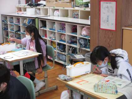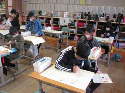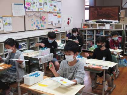 4年生 着色 公開日 2020/12/07 更新日 2020/12/07 4年生 図画工作科では、「4年生の思い出」をテーマに、心に残った出来事を絵で表現しています。 今日からは水彩で着色。楽しかったあの時を思い出しながら丁寧に塗っていきました。