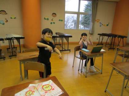 1年生 音楽 鑑賞の様子 公開日 2020/12/08 更新日 2020/12/08 1年生 鑑賞曲「シンコペーテッド クロック」を聴きました。曲に合わせてウッドブロックやトライアングルを鳴らしたり、体全体でリズムをとったりしながら楽しむ姿が見られました。
