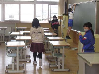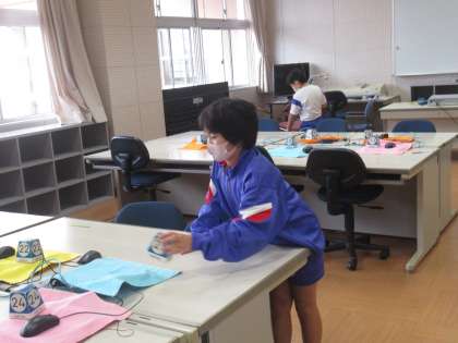 清掃開始から5分。各担当場所では、集中して清掃活動に取り組む姿が見られました。昨日、残念ながら△印がついた「静かに清掃ができましたか」の欄は○印がついていて、満足のいく清掃ができたようです。この調子です!