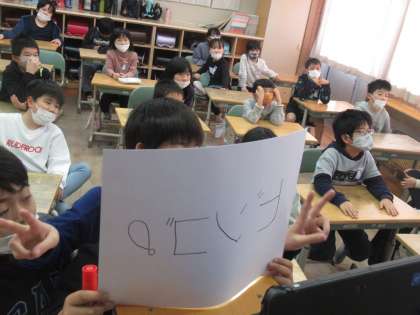 出足は、マスに入れた言葉が読み上げられず、焦りましたが、一つ出だすと、次々にマスの言葉が読み上げられ、念願のビンゴ達成。笑顔を教室に広がり、すてきな時間を過ごすことができました。