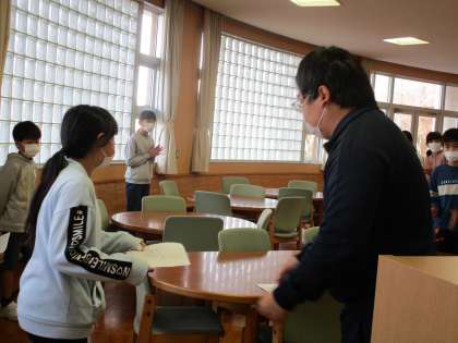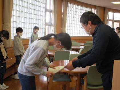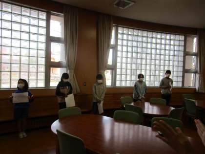 5、6年生からも優秀賞に選ばれました。表彰式が行われ、緊張した面持ちで賞状をもらいました。おめでとう!!