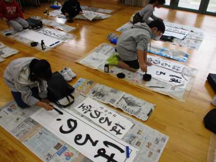 3年生 毛筆の書初に初挑戦! 公開日 2020/12/10 更新日 2020/12/10 3年生 初めて毛筆の書初練習を行いました。新しい道具の使い方を確認し、今まで学習してきた字の書き方を思い出しながら、一画一画丁寧に書き上げました。