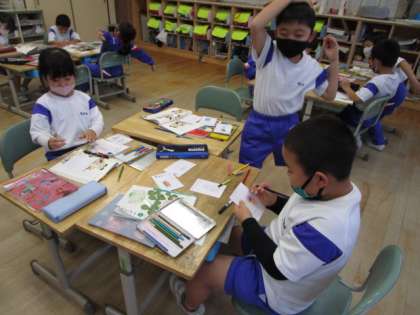 1年生 国語 ものの名まえ 公開日 2020/12/14 更新日 2020/12/14 1年生 「ものの名まえ」の学習で、自分がなりたいお店屋さんを決めました。魚屋、花屋、パン屋など、いろいろなお店が出てきました。お店の売り物をカードに描いて、準備をしています。