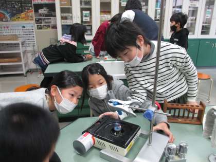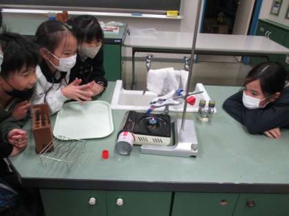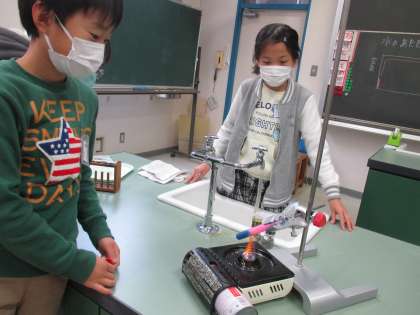 温度によって色が変わる液体を温めると、はっきりと変化が出ていました。